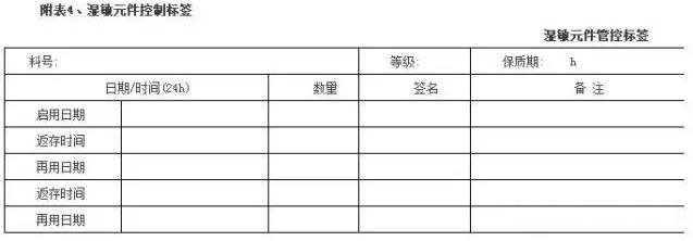 9.4 对于2a-5a等级湿度极度敏感元件,从进料到生产线的每一环节,如果发生开封就必须贴时间控制标签每次发生开封、烘干、封装,都必须准确将时间记录在管制卡的标签上。